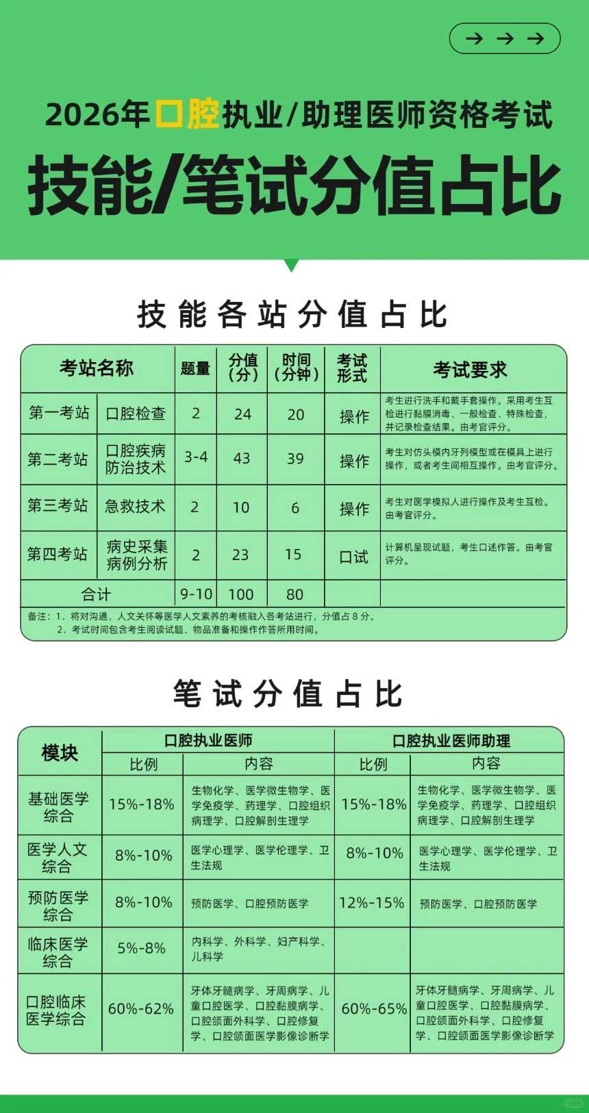 执医各类别分值占比(临床、口腔、中医)